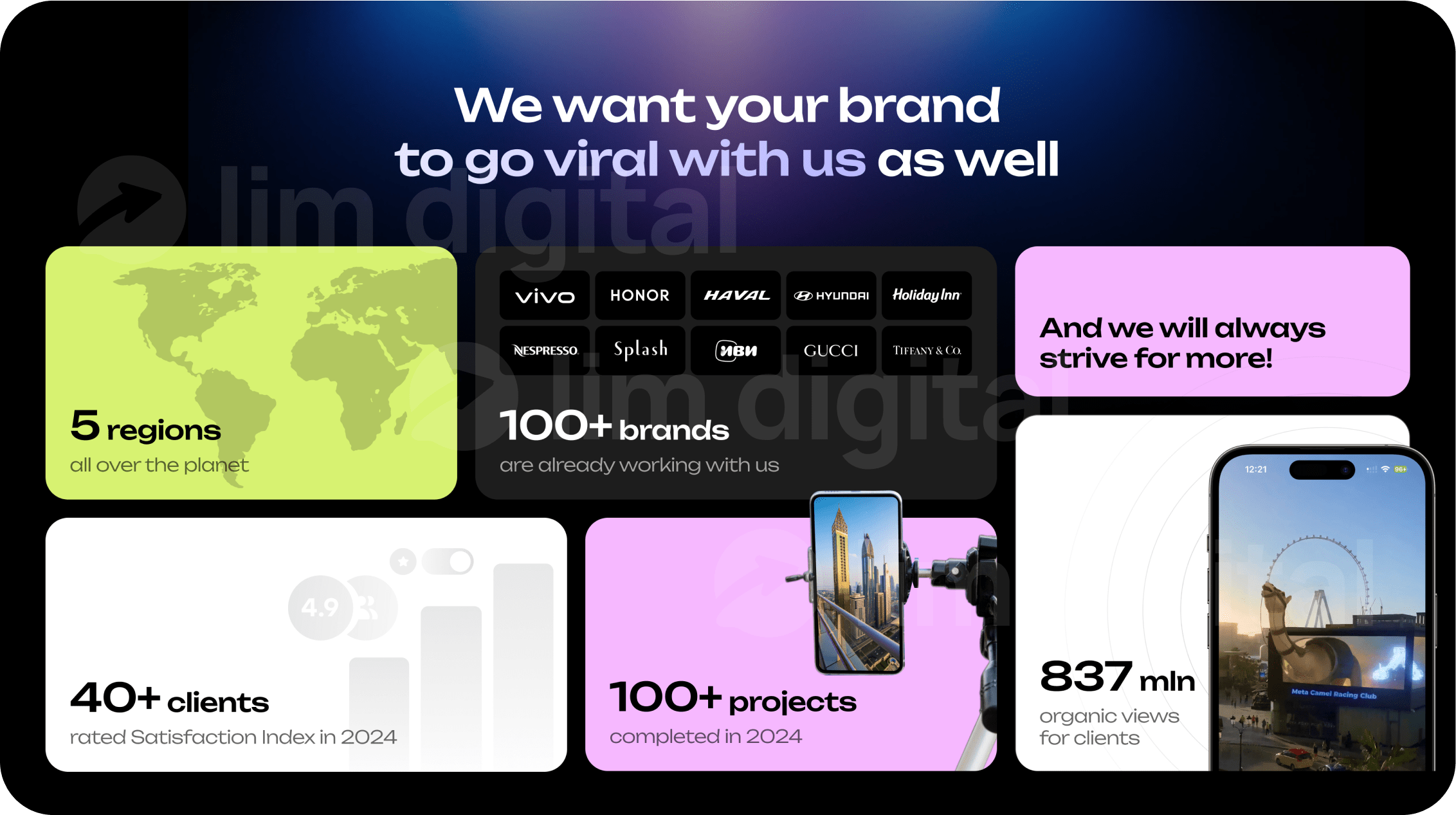 Разработали дизайн презентации для студии, которая создает креативную рекламу для брендов в соц. сетях.