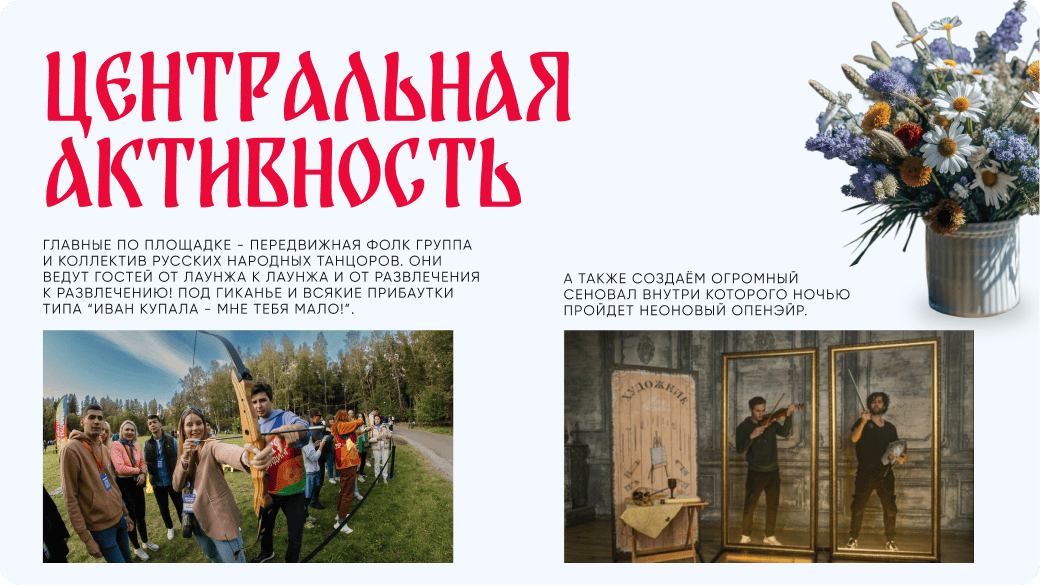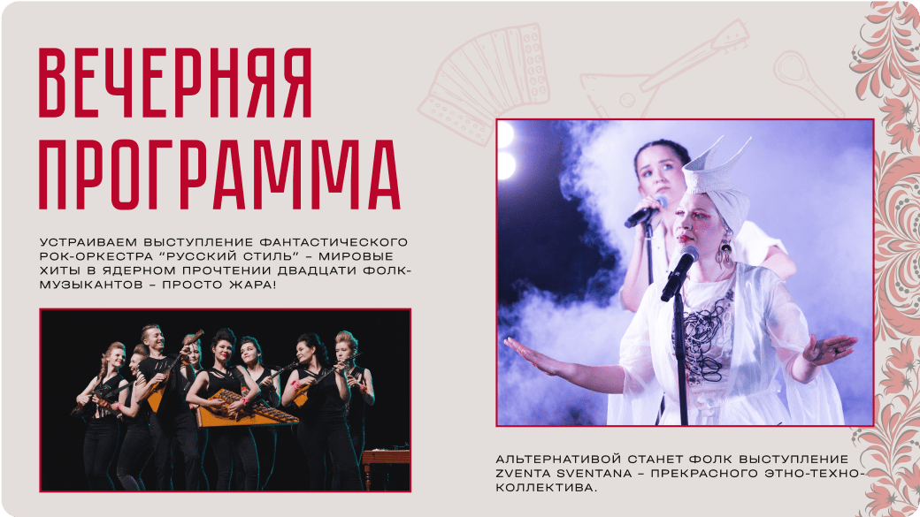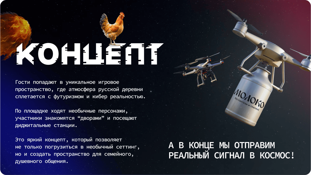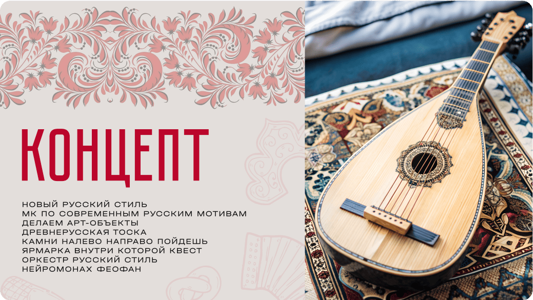 Разработать 3 разные концепции, отражающие стиль и настроение каждого задания мероприятия. Воссоздать недостающий контент с помощью нейросетей.